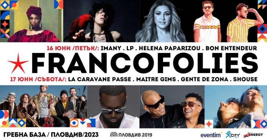 Френският фестивал Франкофоли се провежда на Гребната база в Пловдив – най-стария жив град в Европа. Събитието е част от програмата „Наследство 2023“ на Фондация „Пловдив 2019“ и се осъществява с любезната подкрепа на Община Пловдив и с медийното партньорство на Радио ENERGY и Радио и Телевизия CITY.