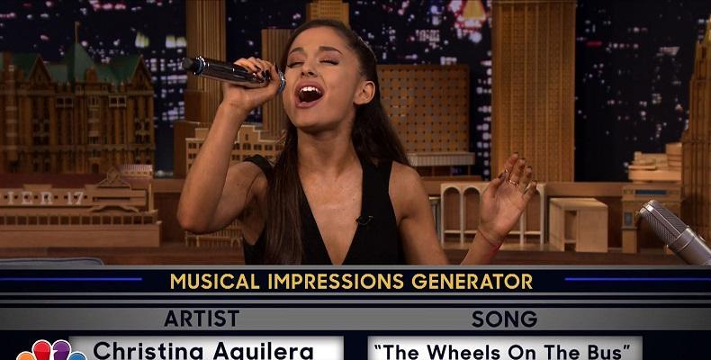 Ариана Гранде пее като Селин Дион, Бритни Спиърс, Кристина Агилера и още...