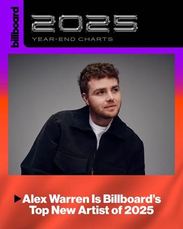 Номинираният за Grammy изпълнител и автор на песни Alex Warren е на върха на общата класация на Billboard в края на годината. Освен това той бе удостоен с честта да влезе в списъка 30 UNDER 30 на FORBES и да бъде определен от VARIETY за BREAKTHROUGH ARTIST OF THE YEAR.