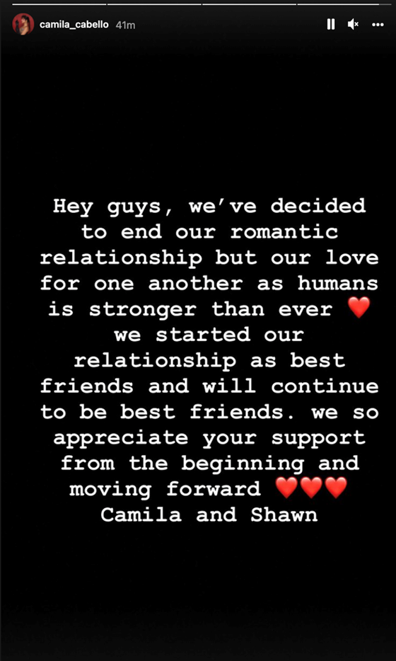 След две години заедно Camila Cabello и Shawn Mendes обявиха, че са решили да прекратят романтичните си отношения и остават „най-добри приятели“.