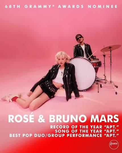 ROSÉ, заедно с Bruno Mars, е номинирана за 3 награди Grammy, включително 2 от голямата четворка в категориите: Record Of The Year, Song Of The Year, Best Pop/Duo Group Performance.